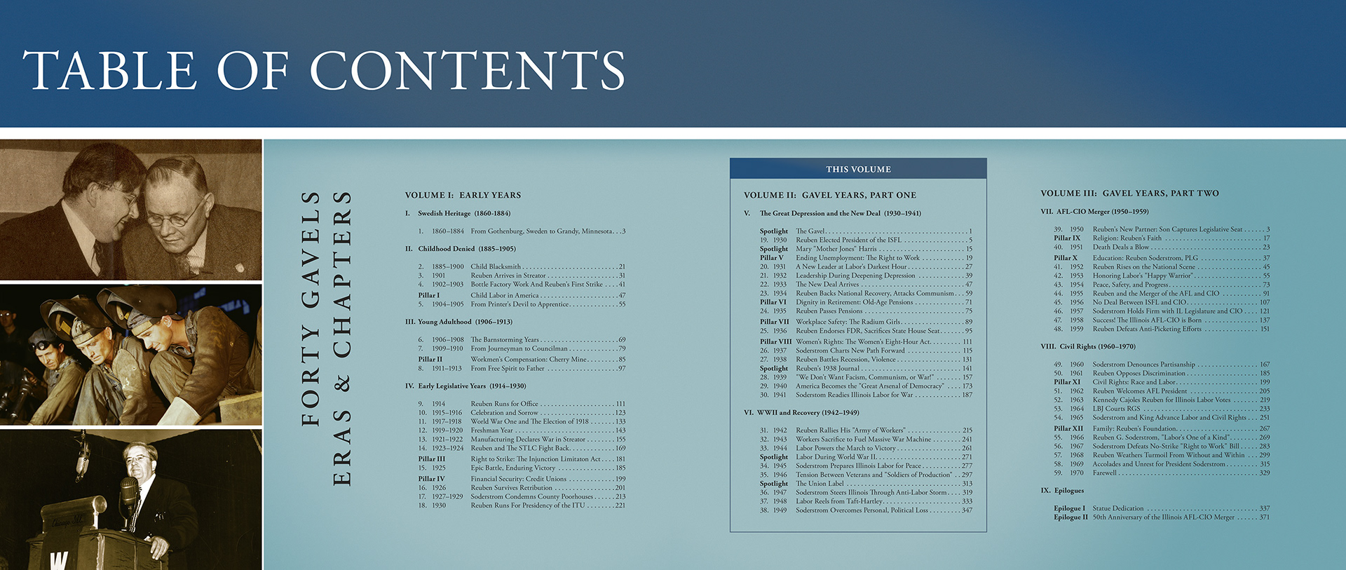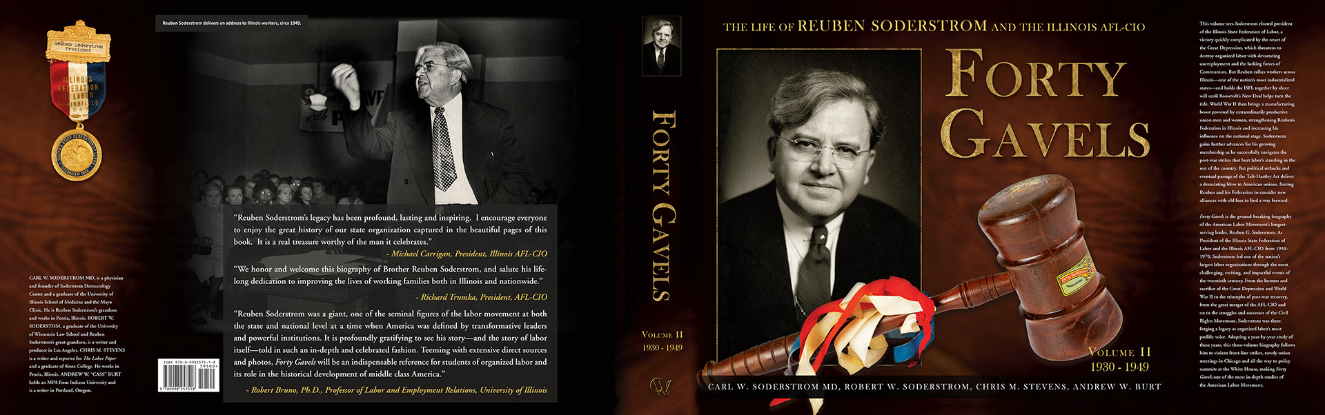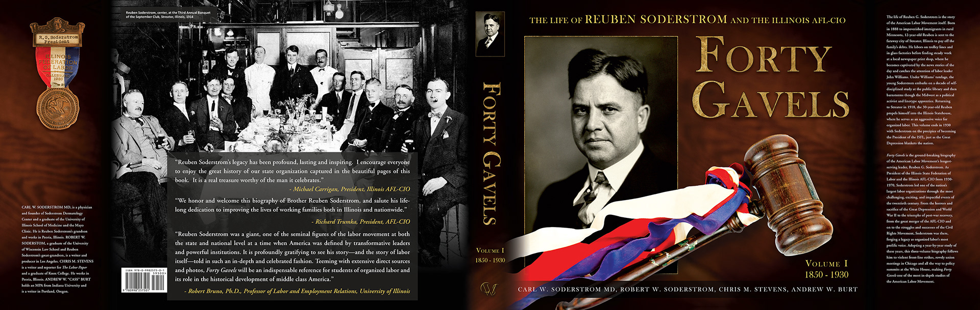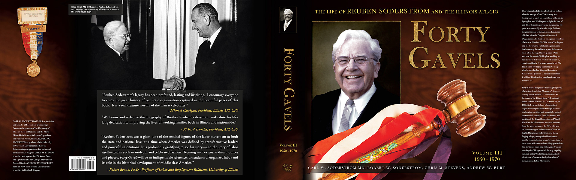 A huge layout and design project – a 3-volume book set, 40 GAVELS, A History of the US Labor Movement, with over 1500 pages and over 1000 sourced historical images - for which I did major photo restoration. This work has won the NIEA Award for Best Biography in 2018, Indie Book Awards - Winner Overall Design, American BookFest - Winner Interior Design, and MIPA Awards - Finalist Interior Design.